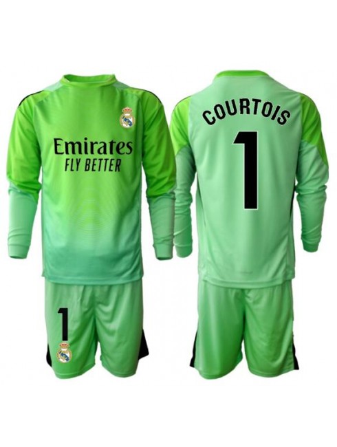 Billige Real Madrid Thibaut Courtois #1 Keeper Bortedraktsett Barn 2025-26 Langermet (+ Korte bukser) 4 0